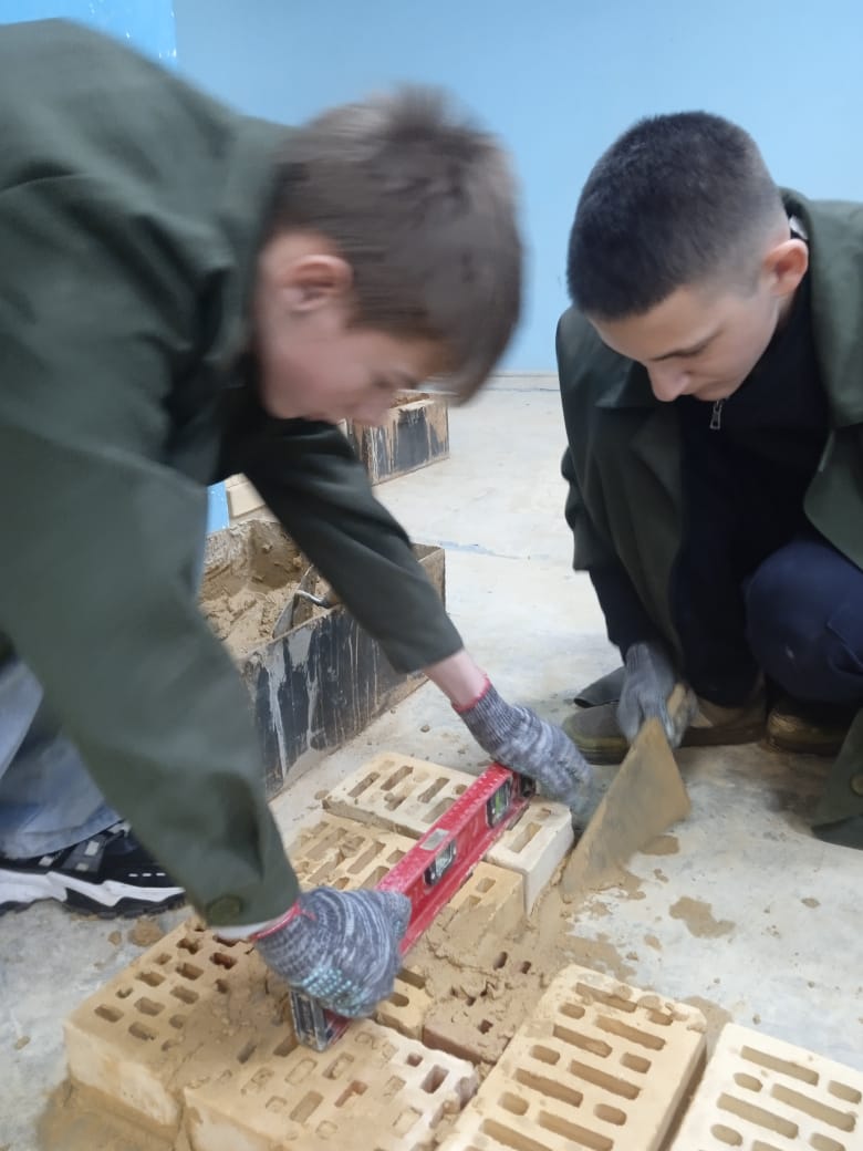 Обучающиеся 8 а,б классов приняли участие в профпробе «Каменщик». Ребятам рассказали о видах кирпичной кладки. Показали, как выкладывать стену, выводить угол. Затем на практике дети сами пробовали выложить часть строения. Комфортная, доброжелательная обстановка дала свои результаты. У всех остались положительные эмоции.