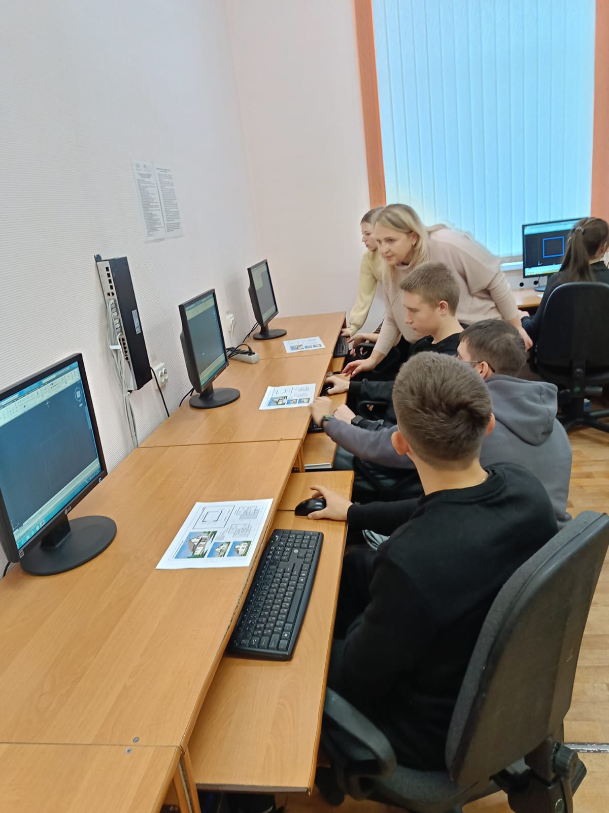 Профессиональная проба “AutoCAD: Первые шаги в строительное проектирование” позволяет школьникам прикоснуться к одной из важнейших задач, выполняемых техником-строителем в его повседневной работе: создание и чтение строительных чертежей с использованием программного обеспечения AutoCAD. Ребята 10,11 классов в компьютерном классе работали в программе для черчения, где познакомились с инструментами, приёмами построения и экспортом готовых файлов.